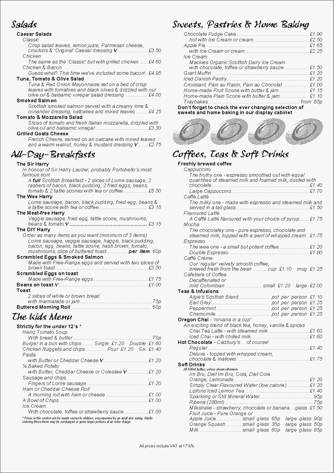 Please e mail us or fill in this form with any comments you may have about our menu.
