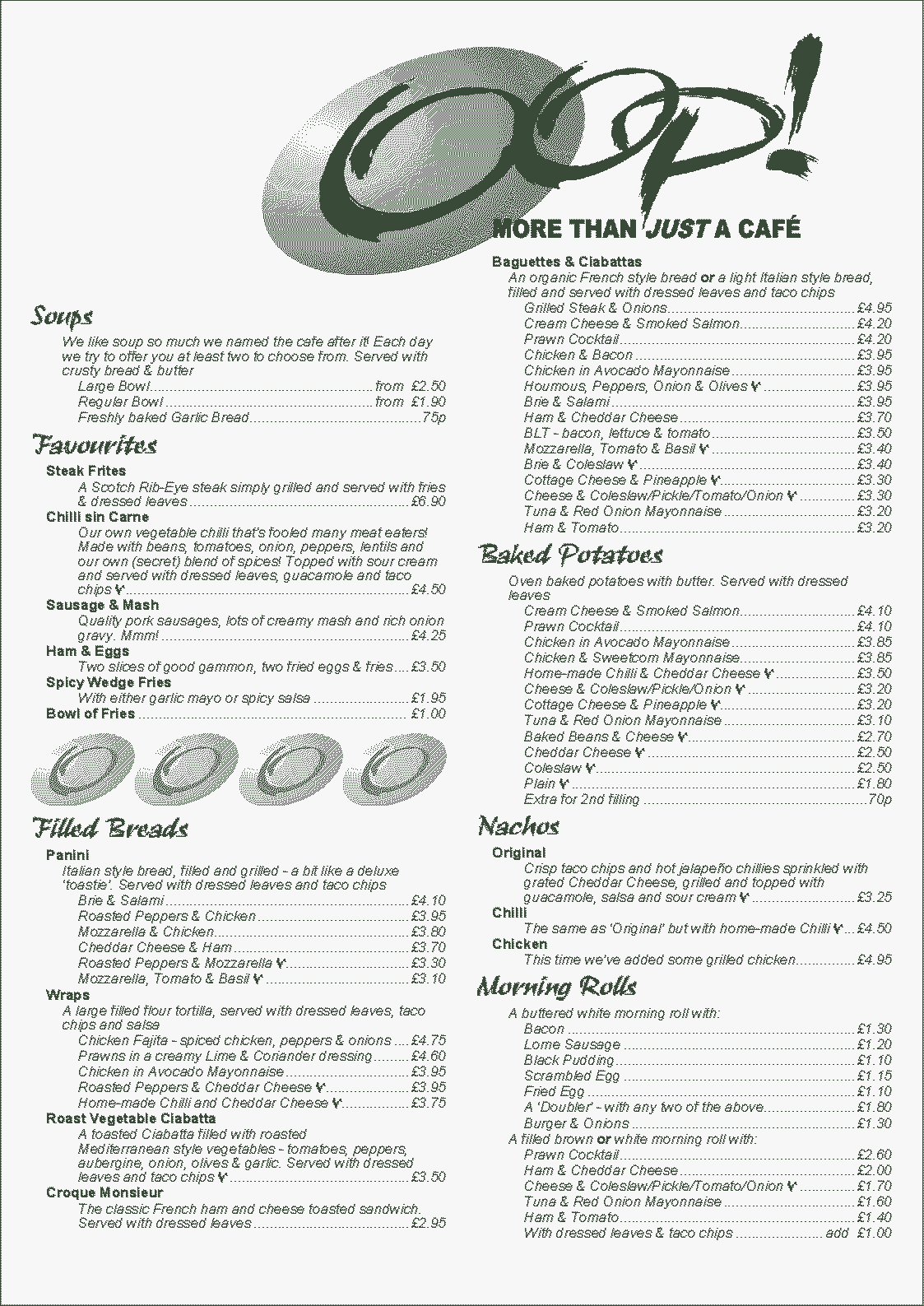 Please e mail us or fill in this form with any comments you may have about our menu.
